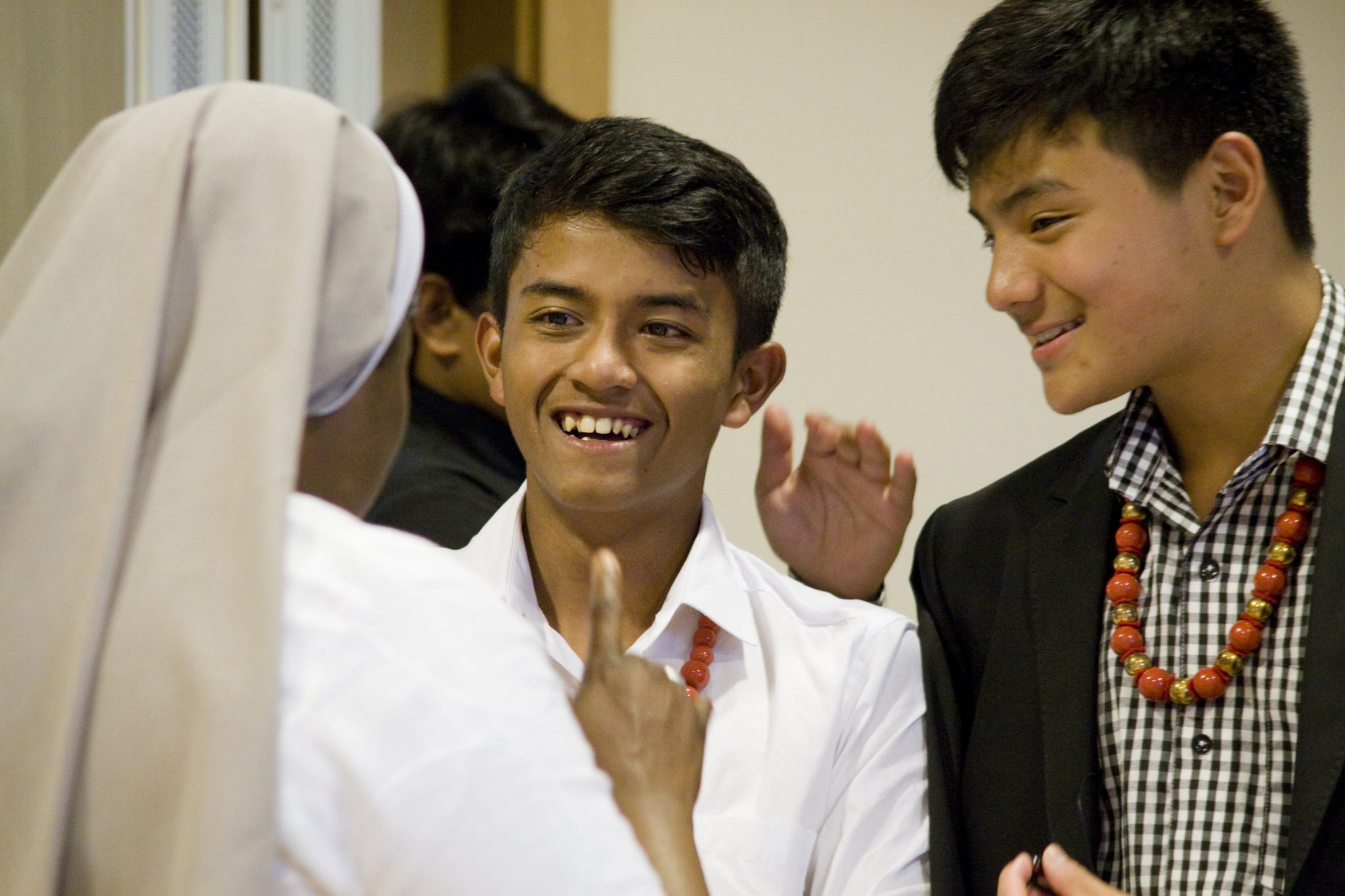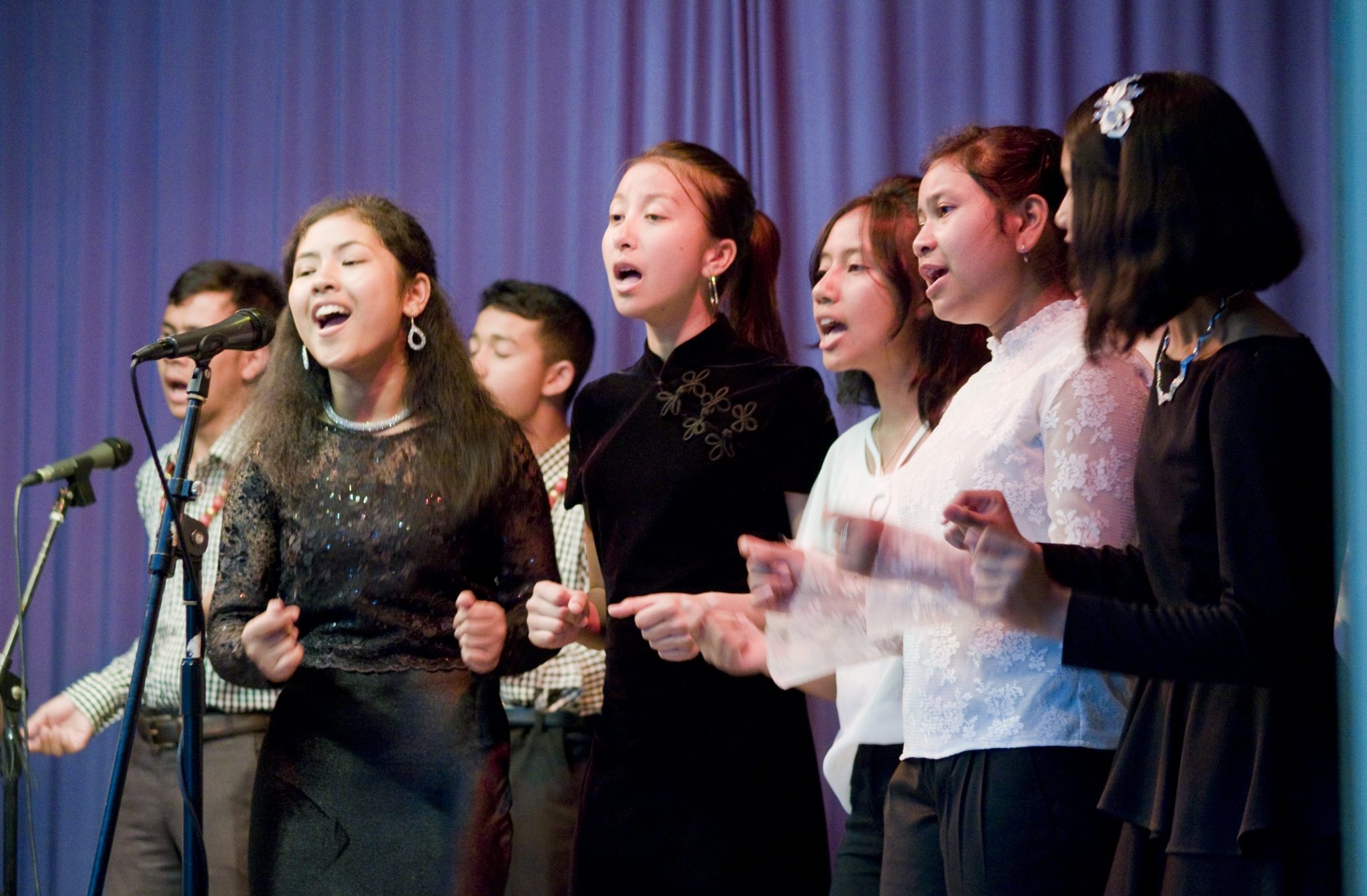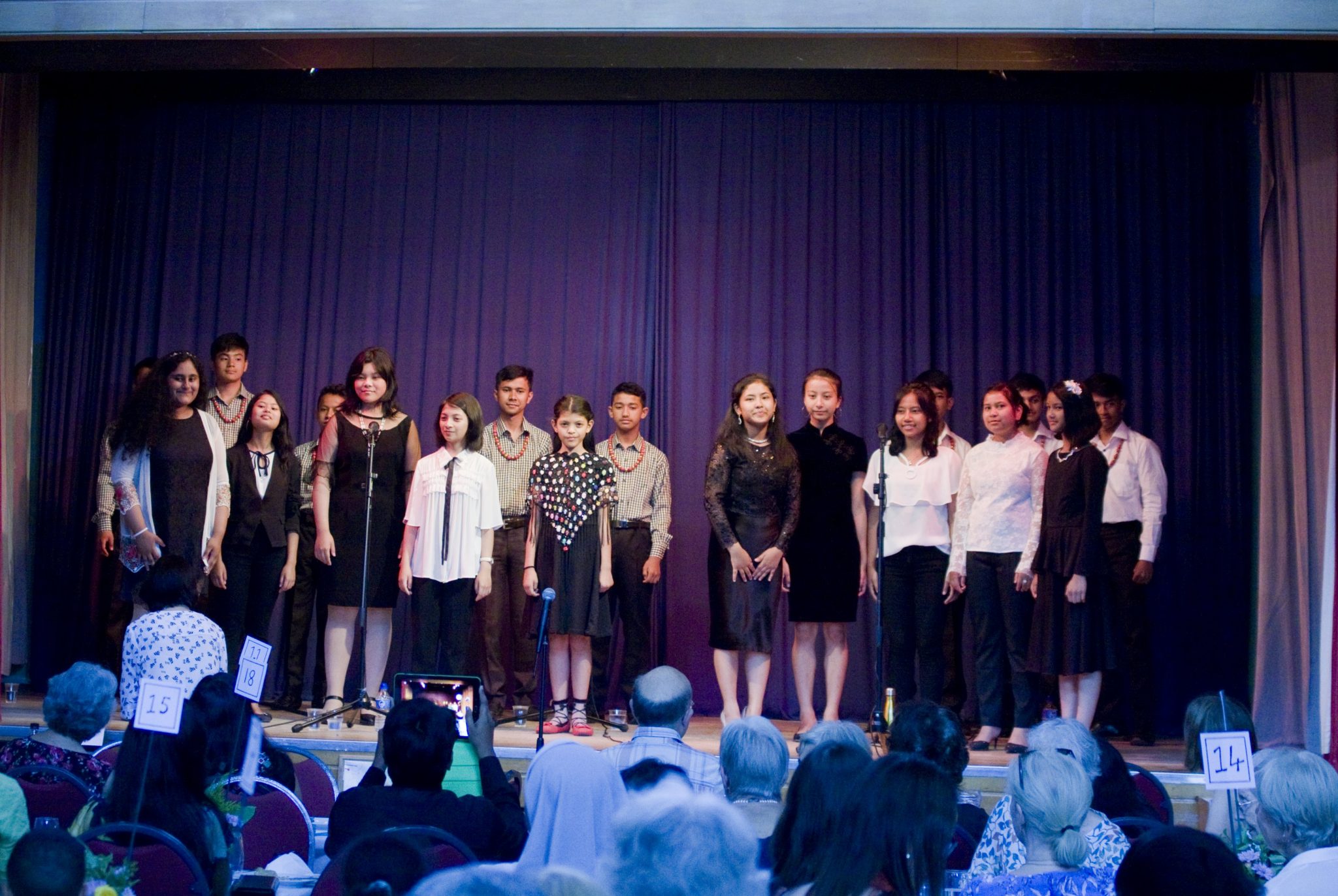 The three oldest boys 18 years and above cannot sing in this category. Meba (21 years) plays the little drum that I bought from Commercial Street in Bangalore. Hassel (20 years) turns the pages. Adel (19 years) conducts. We cannot do a sound check. Nobody is allowed a sound check I am told. I cannot hear them from where I am sitting. The singing swells. The audience claps and I feel they have done well.