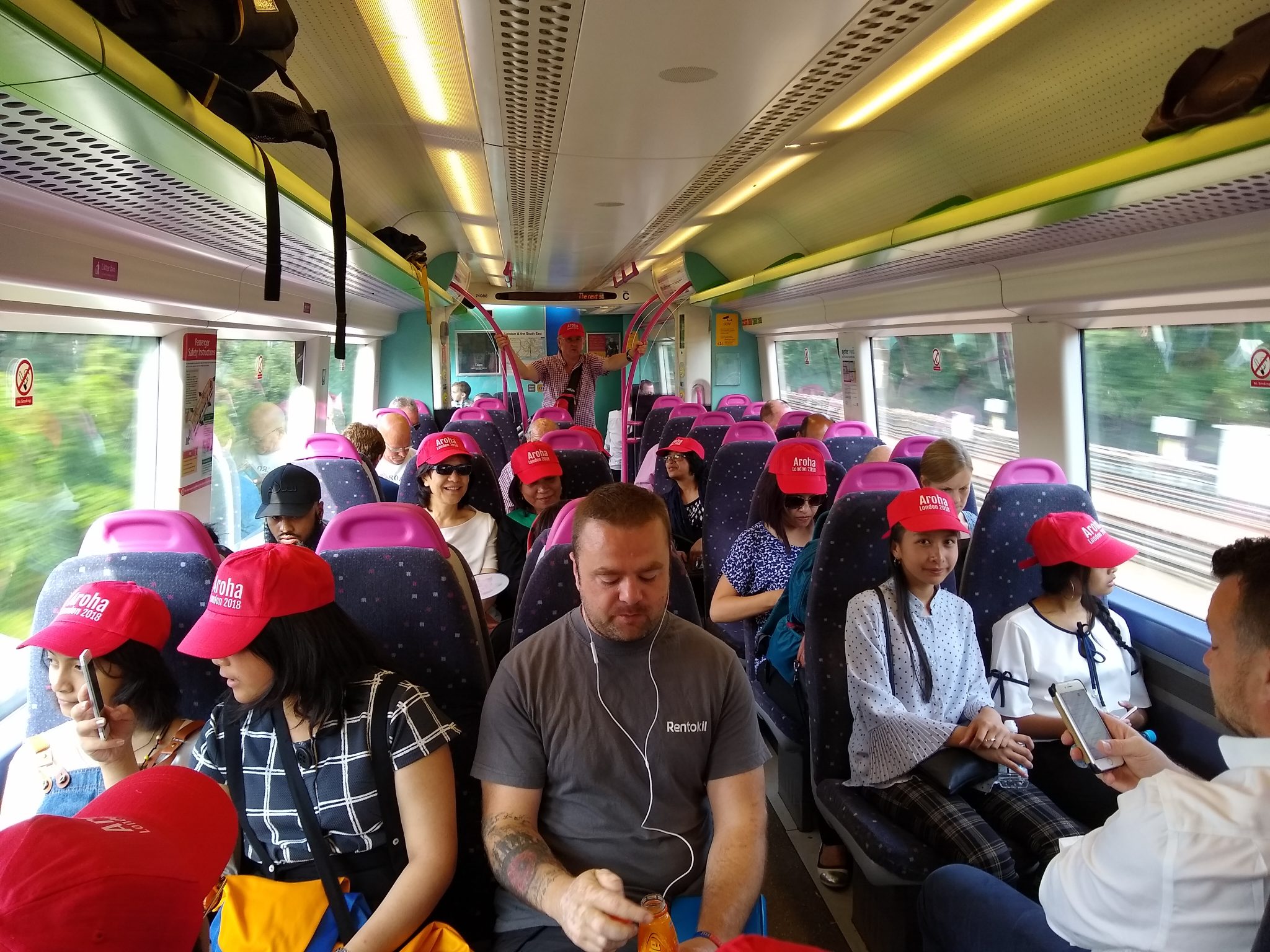 After a sumptuous breakfast in Joanna’s parents lovely garden we set off for London but not before Joanna and her Dad, Ron surprised us with gifts. Among this storehouse were red hats with AROHA LONDON inscribed on them! It will be easy to spot everyone.