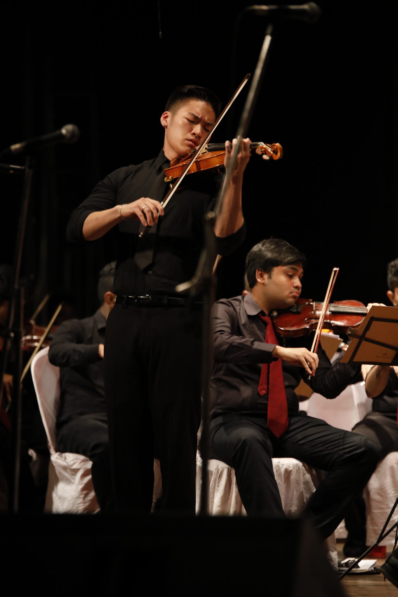 The orchestra was finally allowed a chance to rest, as Saraf, Kim and Pallab Pramanick, KYO’s concertmaster, presented Prelude, Gavotte and Waltz from D. Shostakovich’s 5 pieces for 2 Violins and Piano. Uncharacteristic of Shostakovich’s grim tones, these pieces show warm lyricism. The piano serves mainly as an accompaniment, with the violins interchanging melodies and harmonies with each other. The trio’s technical security and the tonal qualities explored led to a harmonious result.