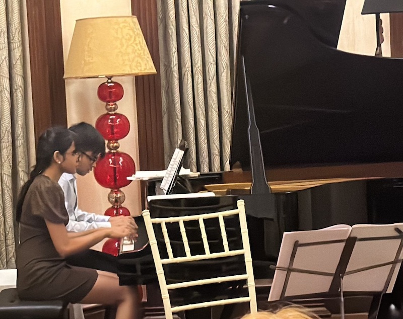 The House Concert is a unique musical format where the Effem Ensemble and piano students currently under Fauzia’s tutelage get an opportunity to display the ‘immeasurable gains’ made from a sustained commitment to music in front of a discerning audience not wholly anonymous. Aadya and Dhiman Narayan, the sibling duo who mesmerised those in attendance by their stellar readings of Czerny, Mozart, Joplin, Nazareth, Schubert and Chopin on the piano displayed a musical maturity beyond their years in two pieces selected from Grieg’s Peer Gynt. I remember the space created in the room during the first and last chord of Anitra’s Dance, as well as the sense of suspension of time between phrases in Åse’s Death created by this promising young duo.