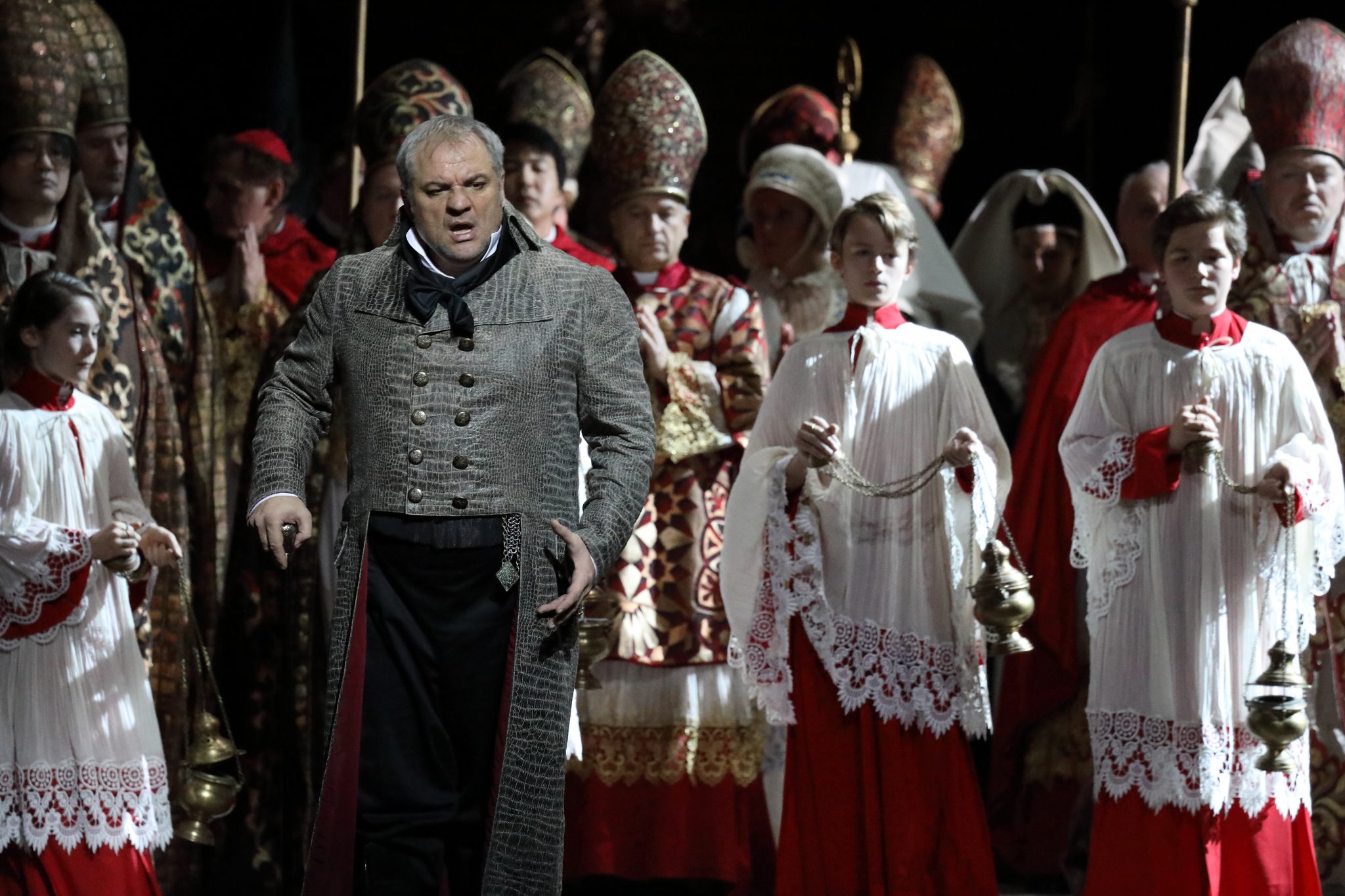 On November 3rd I saw a performance of Puccini’s Tosca in Luc Bondy’s infamous ten year old production first seen at the Met. Although the staging seems now rather bland this evening was saved by some excellent singing. Angelotti sung by Markus Suihkonen although having just a few lines to sing was sonorous. The Sacristan of Martin Snell sounded woolly. Things changed immediately with the arrival of tenor Stefano La Colla who sang a splendid “Recondita armonia”. He has a bright lirico-spinto but I missed the sense of a real squillo to the top. What was specially remarkable in this entrance aria (he has therefore no chance to warm up) was the meltingly beautiful phrasing and unstrained high notes.