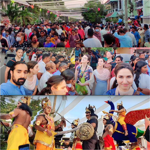 Our first stop was Kochi, where we were invited to witness the Kochi Muziris Biennale and rehearse for our concerts. The colors, art and sounds of the city around New Years and especially for the biennale were absolutely amazing to experience. Apart from the beautiful art and backwaters, we also managed to find ourselves in the middle of the Cochin Carnival parade, which was filled with fantastical ornate costumes and nearly 60,000 thousand people in attendance. Definitely not my first rodeo, but the others seemed to be amazed by the sheer numbers of people. The best way to experience India, in my opinion.