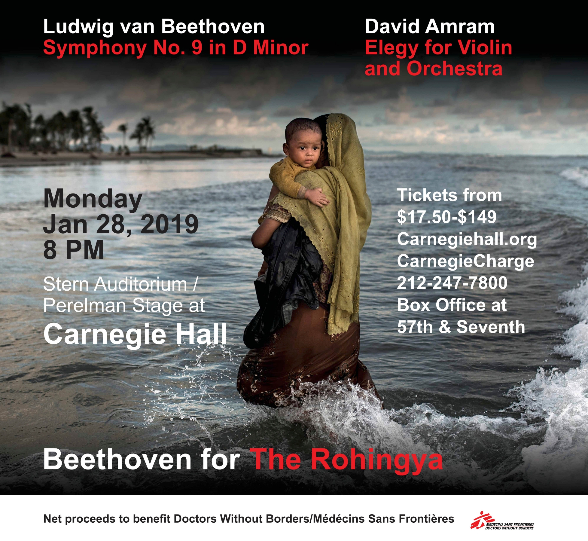 Music for Life International continues its decade-long tradition of global humanitarian concerts with Beethoven for The Rohingya, a benefit concert featuring Beethoven’s monumental Ninth Symphony, presented in the Stern Auditorium/Perelman Stage at Carnegie Hall on Monday, January 28, 2019. Beethoven for The Rohingya is an urgent call to the global community to raise awareness for the nearly 1 million Rohingya refugees fleeing what the United Nations have defined as genocide in Rakhine State in Myanmar. Refugees, who are seeking safety in Bangladesh, Thailand, Malaysia, Indonesia, and other nearby locations, are grossly lacking access to healthcare when it is needed most; net proceeds from this performance will benefit Doctors Without Borders/Médécins Sans Frontières (MSF), which provides medical aid to those who are among the world’s most vulnerable.
