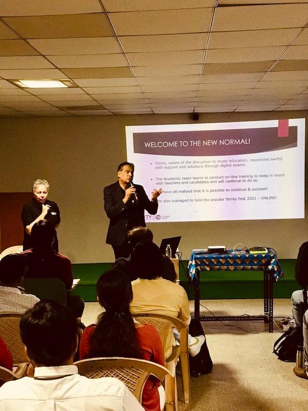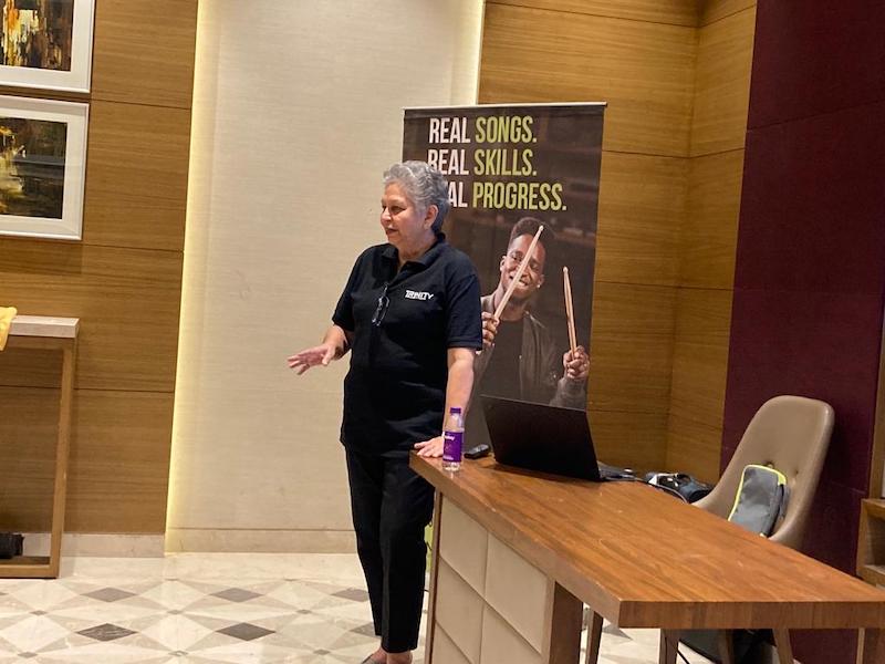 Rajkot, the small but historic city, with strong associations with Mahatma Gandhi’s boyhood, has a significant Trinity presence. It was our first port of call in Gujarat, and an experience to remember- not only were the city’s teachers in attendance, but we saw music educators from Bhavnagar and Jamnagar present too. A truly encouraging feeling for us to know that they took the trouble to participate, taking the time out to travel to be with us. And also memorable was the unique Gujarati thali at lunch, traditional flavours to savour!