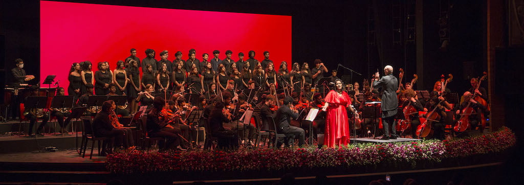Soprano Divya S. Iyer, an alumnus of the KM Music Conservatory, delivered what Rahman hailed as a ‘world-class’ performance with a brilliant solo rendition of the celebrated ‘Habanera’ aria from Bizet’s opera Carmen, and a medley of Puccini’s O mio babbino caro and Si, mi chiamano Mimi. The evening also saw the world premiere of American guitarist and composer Matt Bacon’s original composition, ‘Malabar’. As the audience sat enthralled, the captivating evening reached an appropriately superb crescendo with Beethoven’s ‘Ode to Joy’, as all those on stage, conductor, vocalist, brass or string, put in their very best for the climactic ending to the Concert for Friendship.