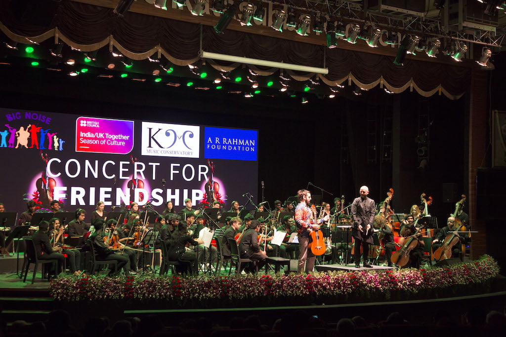 The Concert for Friendship was conceived when the Maestro voiced an apparently simple, yet compelling dream of music eroding boundaries and promoting friendship among young people from around the world. The KM Music Conservatory, Chennai, founded by the legend himself in 2008 with a similar vision of offering world class higher education in music to an entire generation of budding artists and musicians, joined hands with the Sunshine Orchestra, Chennai and Nagaland Chapters, under the auspices of the A.R. Rahman Foundation. The Sunshine Orchestra, a symphony orchestra in the making, had started out as a heartfelt, empowering initiative by the Rahman Foundation to provide free musical training to children from the socially and economically backward sections of society who demonstrate an inclination for musical learning. Soon, other forces joined the Concert for Friendship project in the shape of the Scotland-based charity organisation, Sistema Scotland, with their immersive Big Noise programme that, similar to the Sunshine Orchestra, supports children and youngsters from underserved communities as they train in instrumental music and hone a range of life skills together. While the programme runs across various cities in Scotland, it was Big Noise Raploch (Stirling) and Big Noise Gavonhill (Glasgow), with teams comprising an average age of 16-18 years, that participated in this unique project.