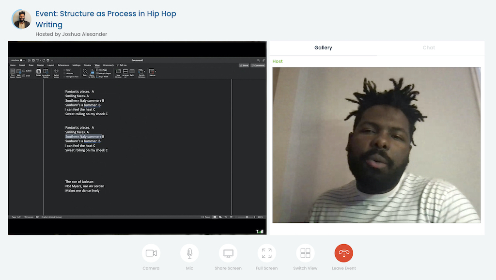 It was global. It was inclusive. It was accessible to all time zones. And when you were in a session with these artists, you felt like you were right there with them. It was a journey to the next town or the next continent. Each artist provided quick, engaging, and process-based workshops and performances with clearly defined outcomes. Every learner left knowing something more than when they came in. And every person connected to someone else, through the arts, across the world.