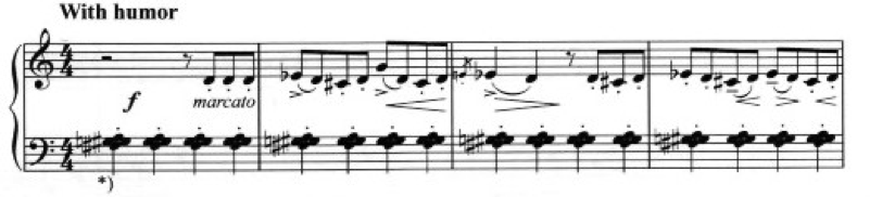 Vibrant sound colors, precise articulation, dissonant clusters, and a bit of humor prevail throughout Stubborn, the ninth piece in Auerbach’s collection. Initially the spartan LH ostinato clusters feel a bit monotonous and heavy. Yet, when combined with the tango inspired RH melody that dances across the middle, high, and low registers, the clusters provide not only a steady heartbeat but they also add a hint of madness that verges on the edge of hilarity as the piece progresses.