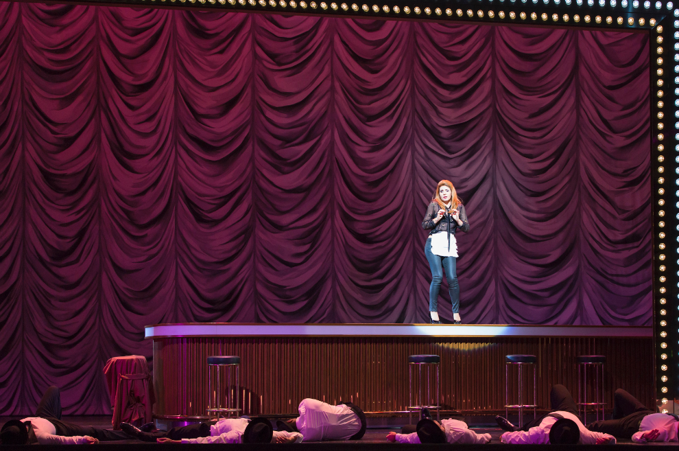 Mozart brings back ‘Opera Buffa’ with a new twist, much different from the reigning influence of Carlo Goldoni in Vienna of the early 1760’s. Here, it is a good idea to refer to Paulo Gallrati’s article from the same book on Mozart and 18th century Comedy. He does point us to the direction that Mozart’s Opera Buffa does not restrict itself to the comedy line of the Italian sensibility. It goes on to incorporate the European theatrical dynamics in its totality. Mozart is well known for the ‘fourth wall’ built into his works, and this particular production by the Royal Opera House, uses it well to bring out the nuances of the human frailties. Women are expected to portray chastity and symbols of undying love. Their lovers however, are at liberty to get carried away while putting them to test. This production, subtly brings forth the inconsistencies experienced by the male counterparts. The inhibitions and arrogance played out by Ferrando and Guglielmo questions the significance of the category of ‘amorousness’, rather than the agencies which define it. The contemporary references in the form of station, bar, etc. render the necessary timelessness to the theme. The space in front of the stage is used as the space for introspection, for the characters. Thus, the element of opera within an opera is explored. Dorabella’s aria, “Smanie implacable” for instance, helps one gauge the transition from histrionics to deeper, private emotions.