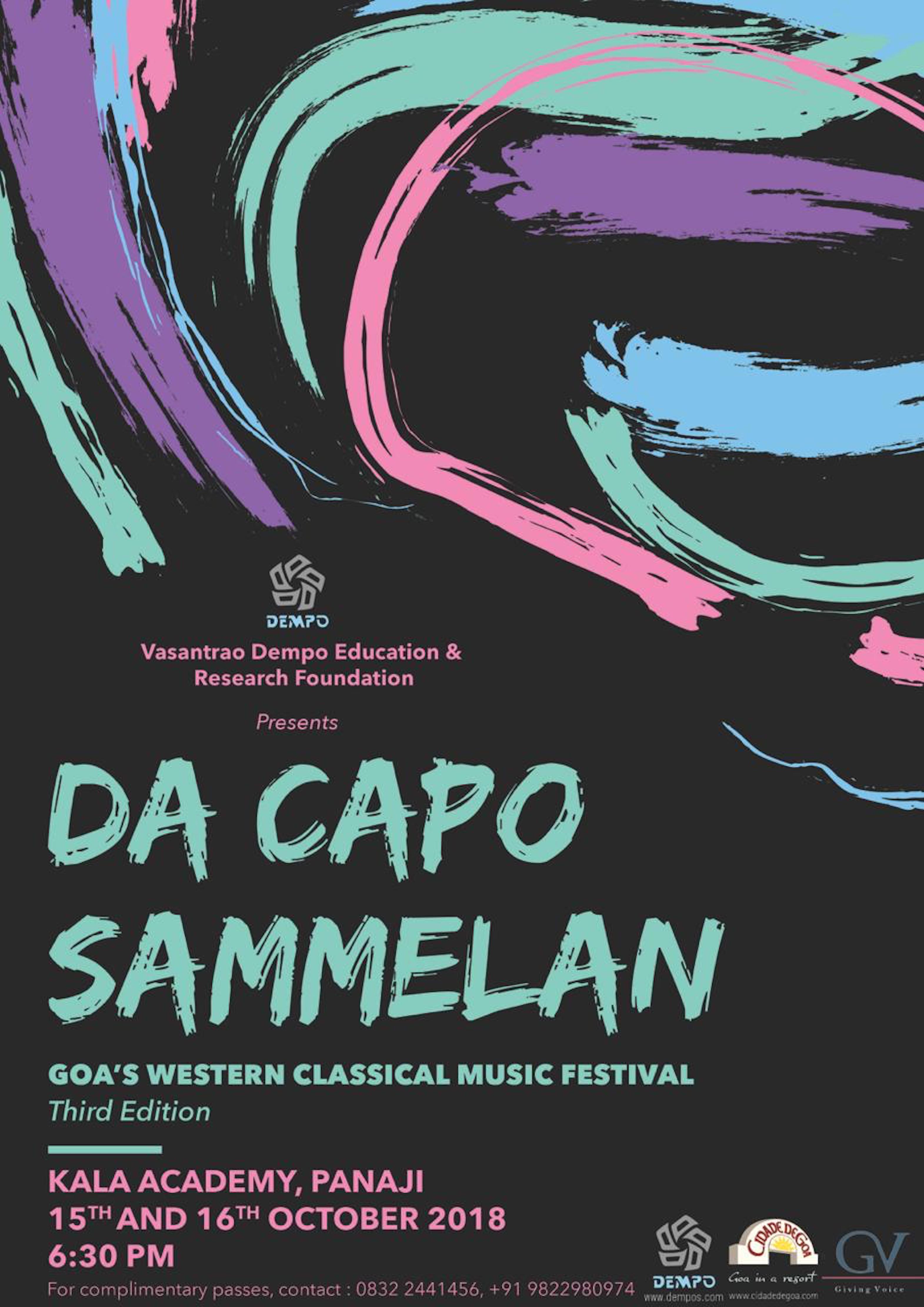 Da Capo Sammelan is a collaboration between Dempo Industries and Patricia Rozario and Mark Troop of Giving Voice Society. This is its third edition, taking place this year at Kala Academy, Panjim.