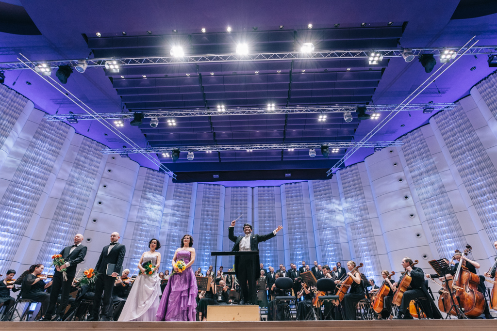 The Orchestra’s repertoire consists of major symphonic works, but includes jazz, chanson and popular music, and it invites guests performers and musicians not only from the world of classical music but in other musical genres too. The Orchestra’s concerts are currently organised in six subscription series, but it performs in many other concerts in Zlín and the region, touring all the country’s major musical festivals such as the Prague Spring, the Smetana festival in Litomyšl, the Janáček May festival in Ostrava, the Brno Špilberk, the Prague Music Festival, Český Krumlov and elsewhere. Tours abroad have taken the orchestra to Italy, Denmark, Hungary, Croatia, Greece, Poland, Austria, Romania, Germany, France, Portugal, Spain, Ukraine and the USA (Carnegie Hall). In 2016 the Orchestra performed in India – some 57 years after the last performance there by a Czech orchestra, and in November 2017 it gave five concerts on a tour of South Korea.