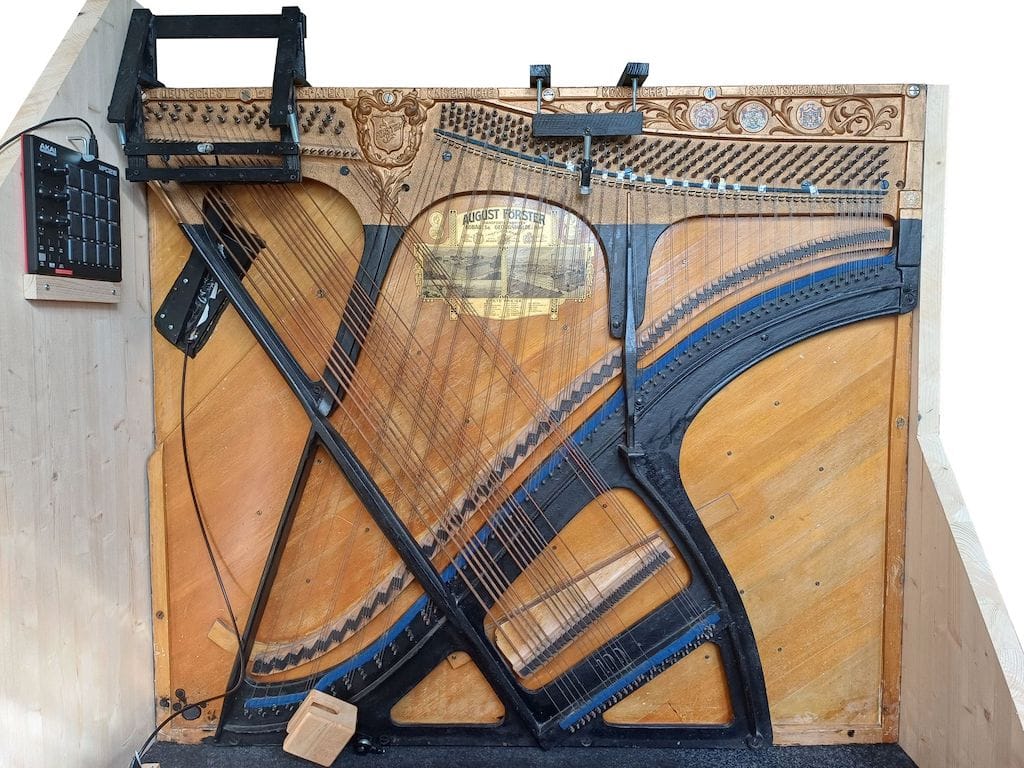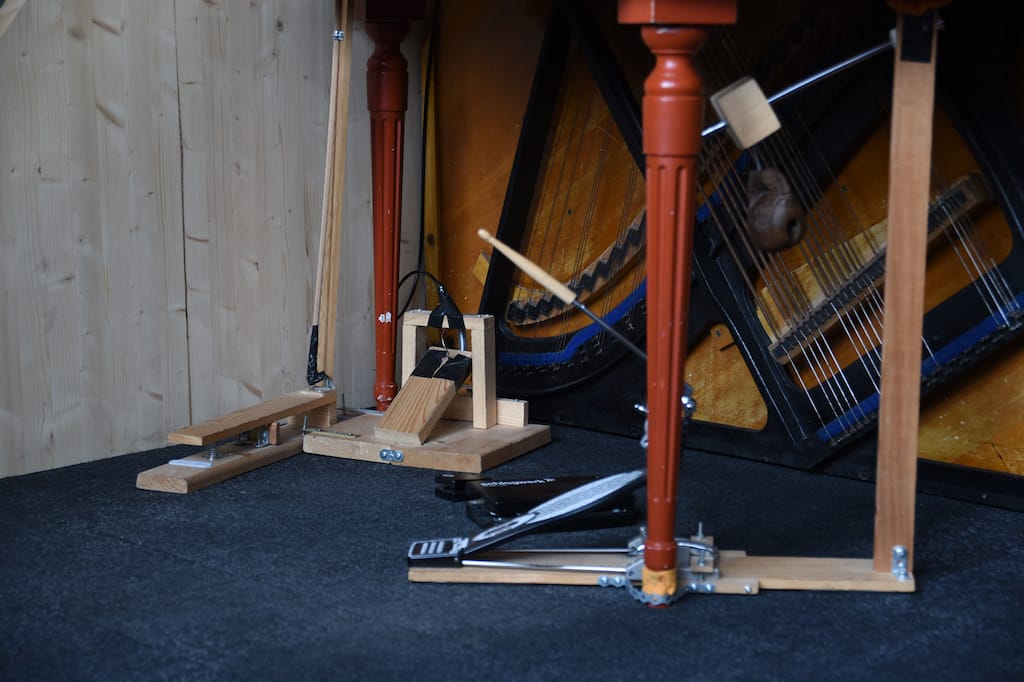 RM: These four levels mirror my musical development, each representing a distinct phase of growth. The first stage involves a standard piano, using techniques like striking the strings and other "gentle" effects. The second level takes inspiration from John Cage’s instructions for preparing a piano. The third stage introduces my fully prepared piano, where approximately one-third of the strings are modified. This configuration enables much faster pizzicato playing and other effects not achievable on an unprepared piano. The fourth stage, which I’m still developing, is called the Pizzicato Piano. It involves a metal frame from a grand piano, equipped with twelve harp strings. This setup allows not only pizzicato but also bowing, mallet playing, and other techniques.