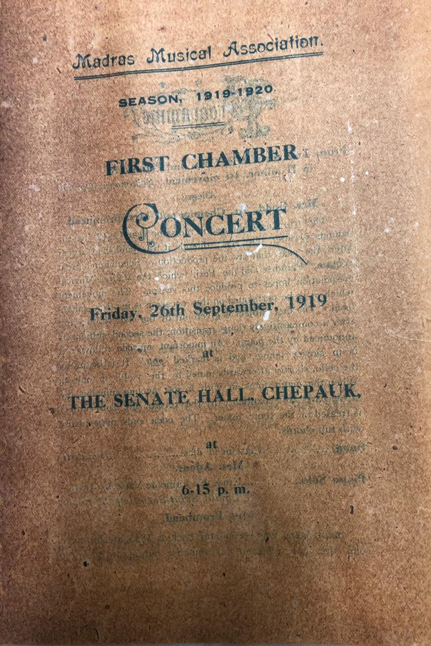 Against this backdrop the Madras Musical Association was founded in 1893 at St Andrew’s Church in the Egmore area of Madras under the directorship of Italian émigré Signor Aloysio who also directed St Andrew’s Church Choir. The MMA was established to perform Western choral and classical music, with many of its performances taking place at Madras’ Museum Theatre. Whilst Western music had become increasingly popular amongst wealthy minority communities in India’s cities, the Madras Musical Association remained an exclusively European organisation until the onset of the Second World War.