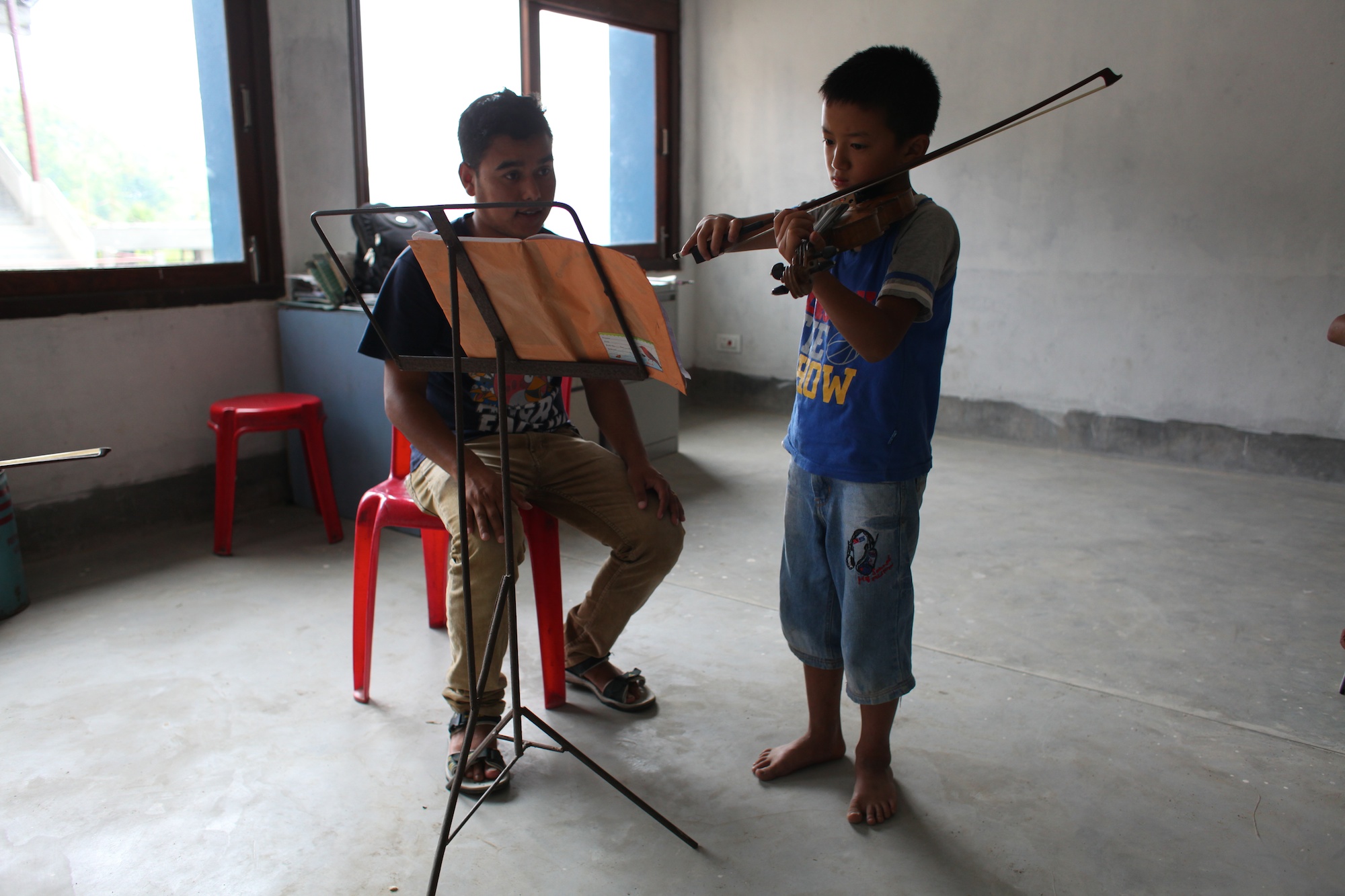 A project that started with me trying to get an amateur college choir a chance to perform with an orchestra turned into a life changing experience. In 2010, while still in college, I set up the Xavier College Chorus to provide a platform for amateur singers. My mission of getting them the experience of singing with an orchestra was impossible without funds. During the same year, I was hooked onto an orchestral album gifted to me by a friend who had just returned from his internship with the German Jesuits. One day, I noticed the cover was, in fact, part of a booklet. The picture of a young Indian girl playing the violin caught my eye and forced me to translate the German description. Internet searches and an email to the German Jesuits led me to the Director of Gandhi Ashram School, Kalimpong. The rest is history.