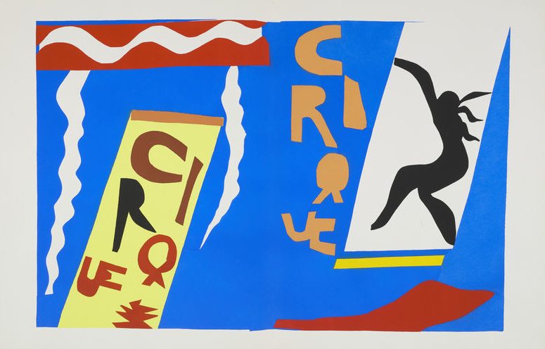 The gouache cut-outs, with their inspiration coming from the circus, its performers, shapes of nature, and his travels to Morocco and Tahiti, are “cuts into colour” — their improvisation and vitality echoing those of Jazz. Although born in America, the art of Jazz continued to evolve in Paris between the two World Wars. American expatriate writers, musicians and performers, such as Josephine Baker and the Révue Nègre, contributed to its success. Many African-American musicians found the artistic recognition and freedom in Paris which had been denied to them in the United States. As Jazz evolved, many of France’s other avant-garde artists adopted it as the sound of the 20th century, using it as inspiration in their own artistic endeavours.