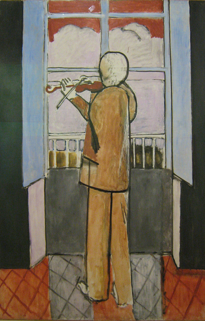 Music was always part of Henri Matisse’s (1869-1954) life. He played the violin on a daily basis, reflecting the rigorous structure and precise technique which corresponded to his artistic methods. It also provided him with an escape and source of inspiration. Some of the early paintings of his room at the Hôtel Beau Rivage in Nice, where he would spend many months from 1917 onward, depict a violin or an empty violin case; in others, a figure is seen with its back to us, playing the violin in front of an open window.