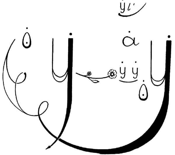 A diagram is used here to illustrate choral-vocal assignments graphically. The children follow the diagrams. The teacher points to a designated element with a pointer, which they then perform. To clarify, here’s an explanation: the first “u” requires taking a breath, with a point indicating a sharp, noisy exhalation on “u.” Next comes a “stem,” which means another breath. A “flower” symbol indicates a pause. Two “u” sounds are performed sharply (the “drop” means the pitch of the sound), then the third “u” is introduced sharply but sustained smoothly and for a longer duration. These exercises are all sung on the same pitch, the first degree of the scale. (A red letter “a” is placed on the third degree, and a green “ul’” on the fifth degree.)