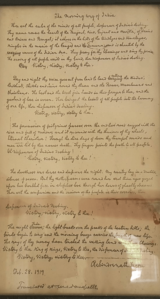“The proceedings began with the singing by Rabindranath Tagore of a song specially composed by him in honour of the Emperor.” (Englishman, Dec 28, 1911)