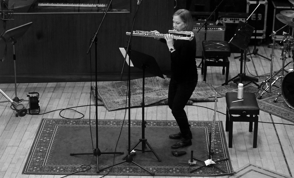 Next up is a short work for solo concert flute, “Places I Go in my Sleep” by the flutist Katharine Rawdon. Three brief depictions of dream states, these pieces use the flute as a lyrical, virtuosic, even frenzied musical proponent, with a few “extended” techniques included for added textural interest.