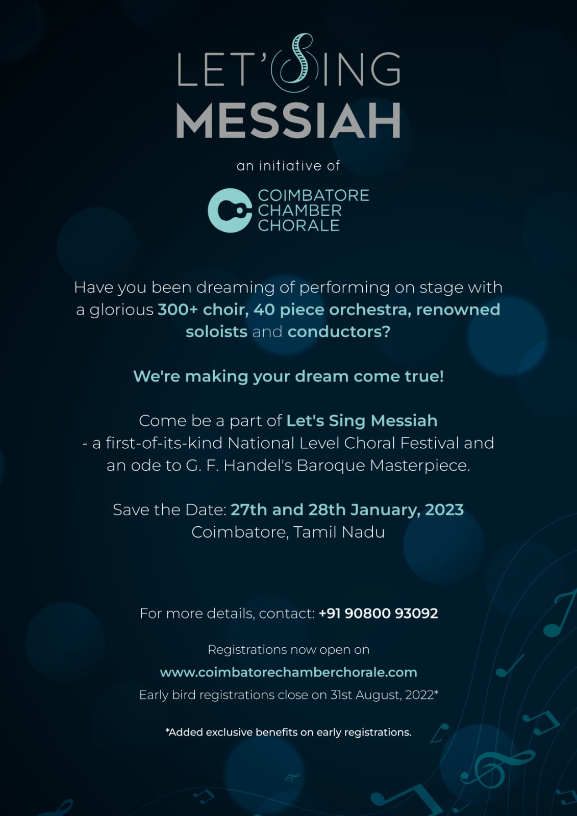 For more details and registration for ‘Let’s Sing Messiah,’ please visit the website www.coimbatorechamberchorale.com.