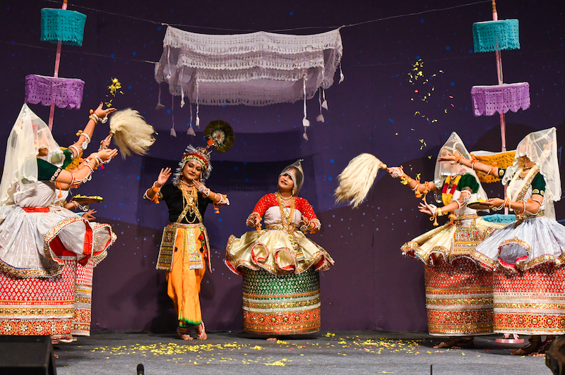A defining feature of Manipuri dance is its emphasis on circular patterns and postures. Dancers often move in circular formations, symbolising harmony and continuity, while intricate footwork and postures enhance the visual poetry of the performance.