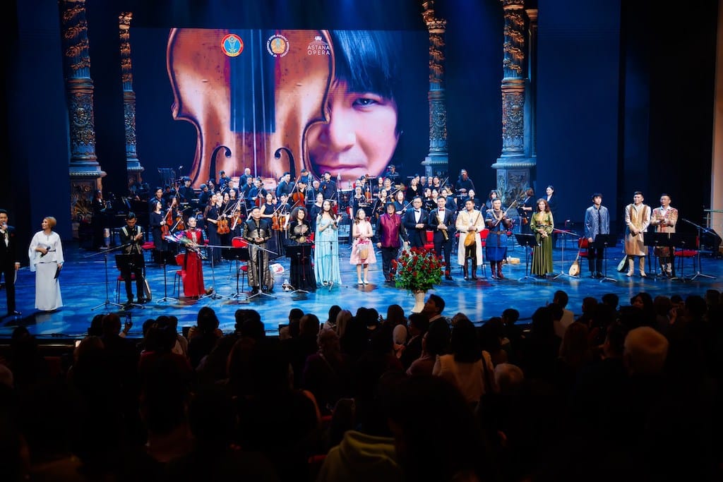 Last October, Marat Bisengaliev presented a groundbreaking concert at the Astana Opera, introducing the innovative 'quad sound' technique. This unique setup involved placing the orchestra and choir in specially designed acoustic areas, creating a dynamic and immersive listening experience throughout the hall. Alongside Bisengaliev's virtuoso performance, the concert featured saxophonist Arukhat Mussaipov, multi-instrumentalists Serik Nurmoldayev, Anar Kassymova, Abzal Arykbayev, Askar Soltangazin, and young vocalist Anna Yudenich, whose soulful voice resonated deeply with the audience. The Astana Opera Choir, under the direction of Beimbet Demeuov, contributed with powerful choral parts. The program included a diverse selection of compositions, such as 'Dala', 'Air', 'Abai', and 'Zhelsiz Tunde Zharyq Ai', highlighting Kazakhstan's rich cultural heritage and celebrating a remarkable collaboration of artistry and innovation. Photos: Astana Opera