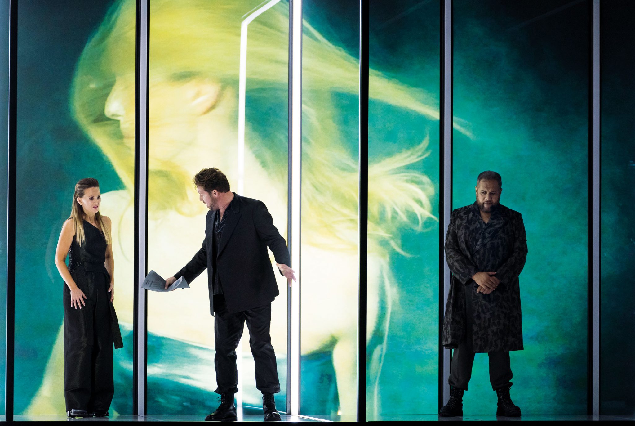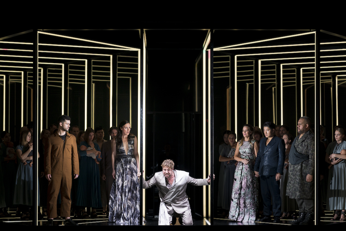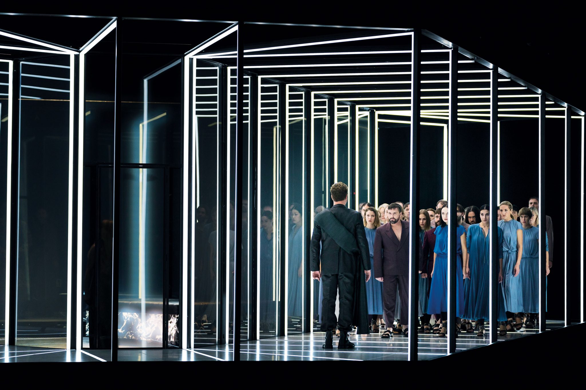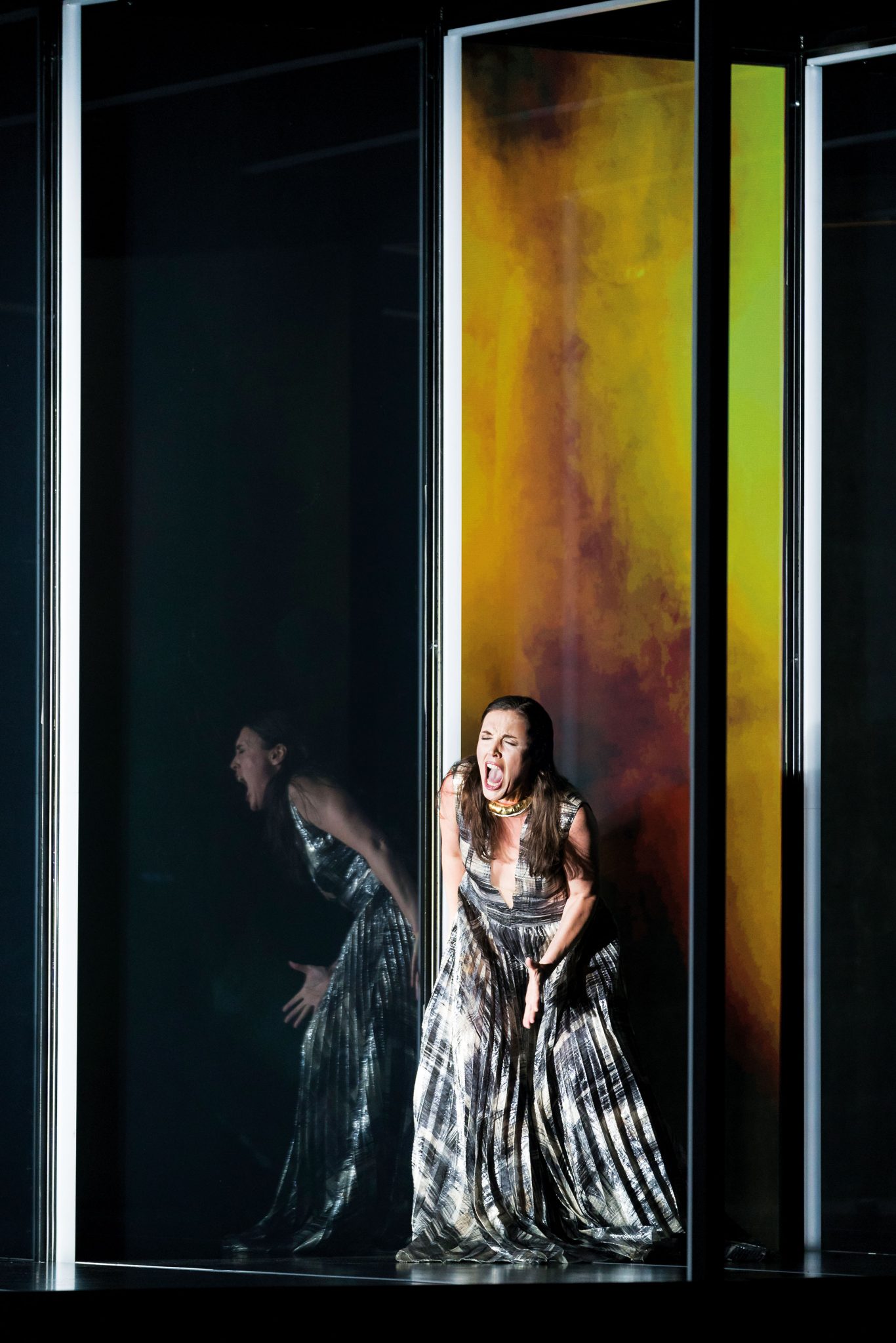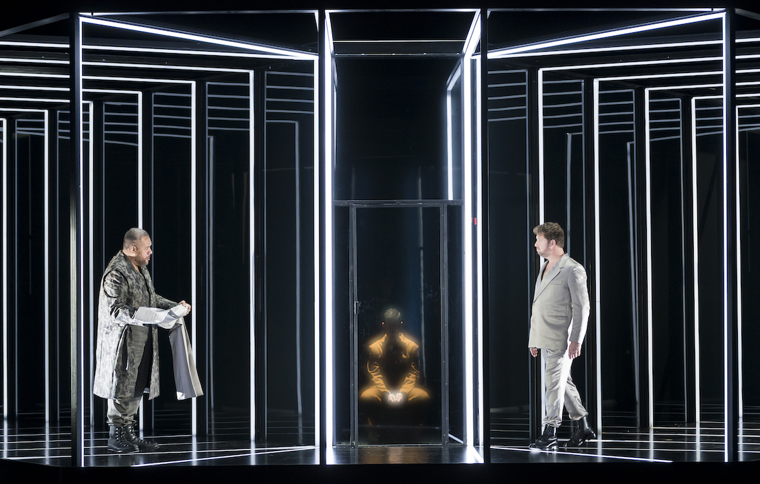 Stefan Gottfried conducted Concentus Musicus Wien with excellent control and musicality. A specialist in period-instrument practise he was conductor in residence at this theatre in Handel and Purcell last season. He is also a professor at the University in Vienna. Stage director Sam Brown trained in Oxford and London has received many awards for his work in both standard repertory and modern opera. The minimalist staging of rotating vertical illuminated steel bars ingeniously boxing characters on stage while the back drop presented moving pictures as commentary.