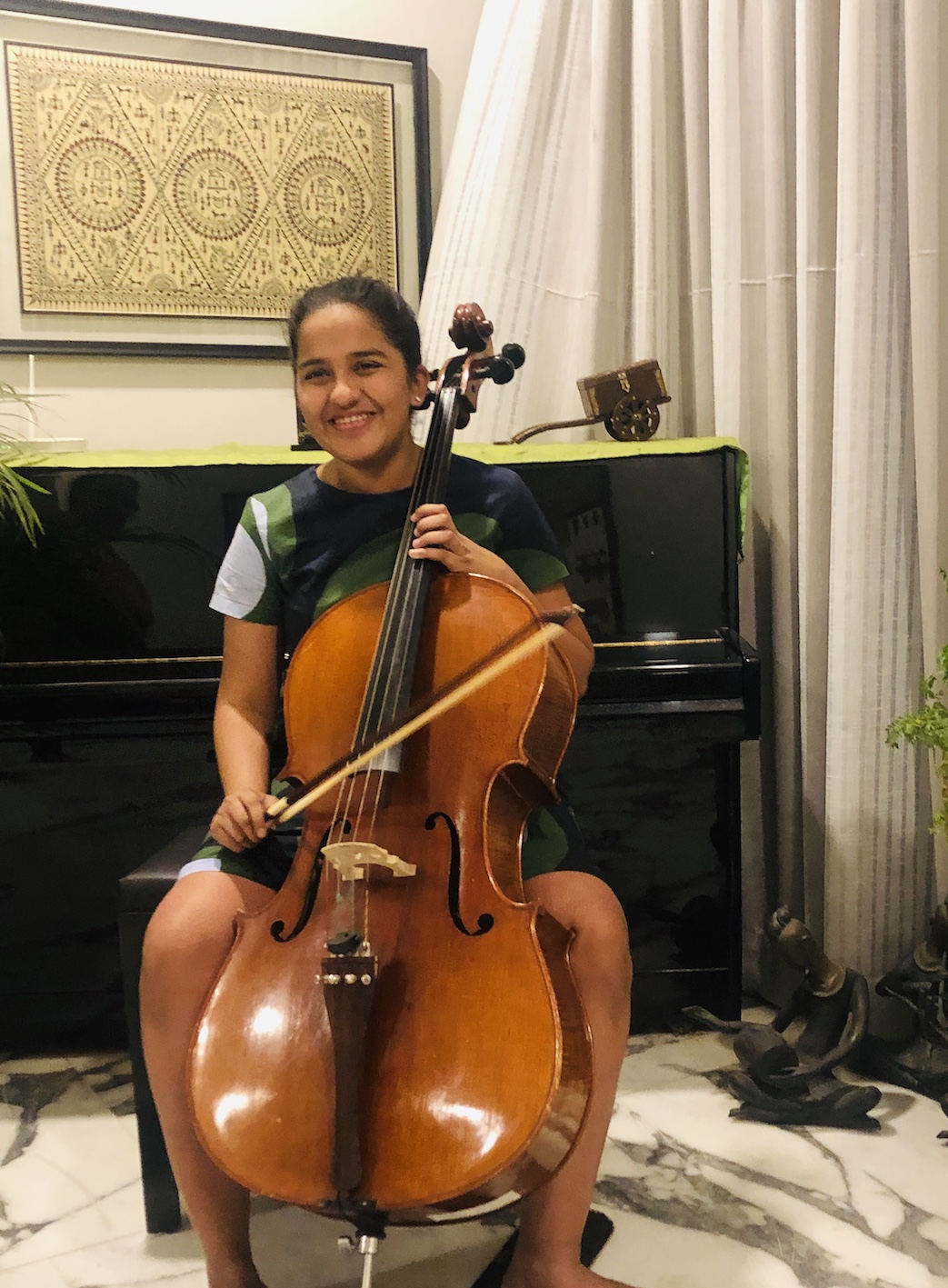 As a child, I drifted from one extracurricular activity to another. When my older sister started playing the violin, I decided to give it a go too. However, the high-pitched sound of the violin didn’t appeal to me, and I was quite miserable while playing it. Then one day, when I had gone to pick up my sister from class, Miss Margarita Gapparova saw me and suggested that I try playing a few notes on the cello. From the very first note that I played, I fell in love with the instrument. The cello has a beautiful sound, and playing it always makes me happy and relaxed.