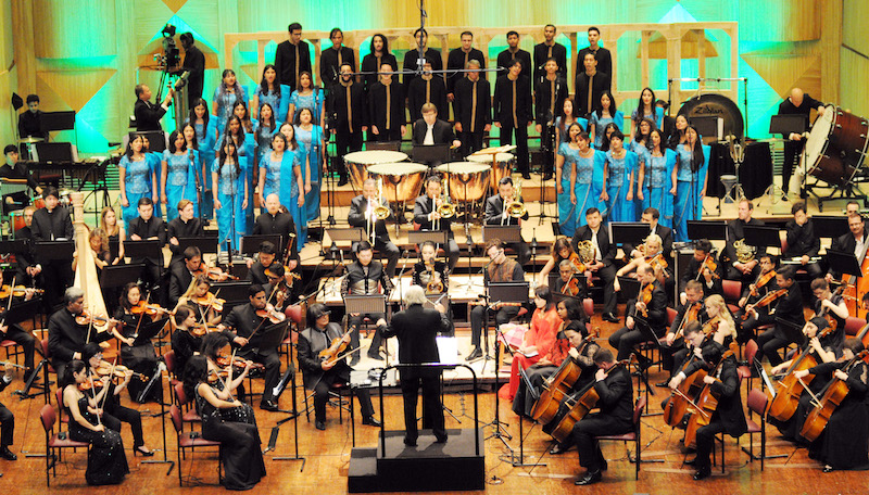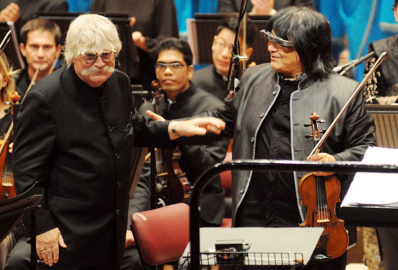 When the SOI was established in 2006, Jenkins’s works found their way to the NCPA. The Welsh composer’s ‘Cantus Insolitus’ was part of the SOI’s repertoire in its very first season. Many still reminisce about the opening of the Spring 2009 season with the Karl Jenkins Anniversary Concert, where Jenkins first presented his music in a big production with the SOI and Living Voices choir at the NCPA. The programme included Adiemus: Songs of Sanctuary, Palladio, as well as Sarikiz, one of the many violin concertos he has written over the years for Bisengaliev. “Working with the SOI was wonderful and Marat suggested we use the bansuri instead of the quena for a special Indian sound,” Jenkins later said in an interview with ONStage about the 2009 performance.