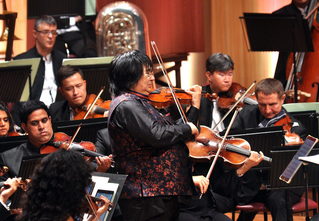 Marat Bisengaliev turned in a remarkable performance. From the very start, he was fully in control of his instrument. The dynamics possibly over stressed, but never to the point of losing the flow of the music. The slow movement was tender and lyrical with some patterns of folklore and even semi-oriental Georgian melodic inspiration.