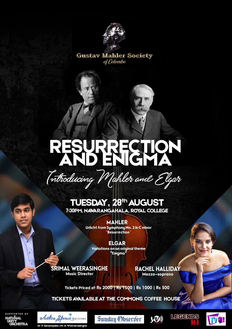 The Gustav Mahler Society performed its inaugural concert, “Resurrection and Enigma; Introducing Mahler and Elgar”, conducted by its Chief Conductor, Srimal Weerasinghe and with Sri Lanka’s foremost violinist Maestro Ananda Dabare as the Concertmaster of the 80-strong orchestra. It concert was held at the ‘Navarangahala’, Royal College Colombo on the 28th of August 2018.