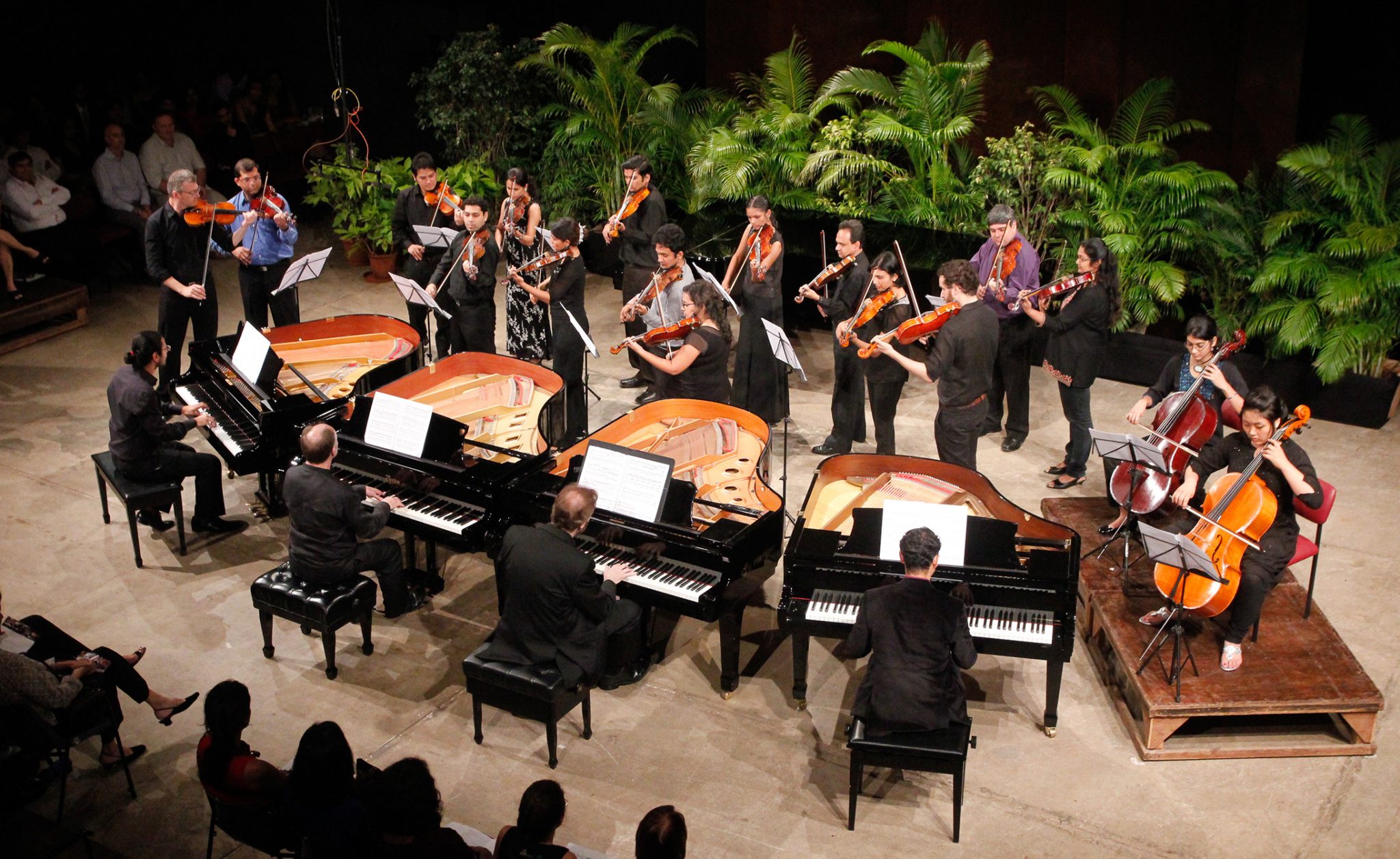 Over the years, the stress has been on exploring lesser-known works and composers. Glazunov’s Festival Cantata and Vanraj Bhatia’s Piano Concerto were both retrieved from the archives and performed after several decades. Unknown composers such as Destenay, Drigo, Migot and Netzel were presented in India for the first time. Arrangements have also been a mainstay of Con Brio, the most exciting being the arrangement of the finale from Beethoven’s Ninth Symphony for chorus and 8 pianos 32 hands, prepared to celebrate 150 years of Furtados’.