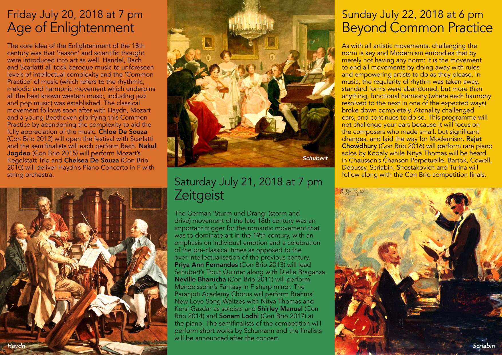 So after eight years of adventurous programming, the festival contingent, composed solely of young Indians, will come together to present three concerts of well-known works, by well-known composers in their entirety and original unedited form. There has always been a theme, and this year will be no different. Three very significant ideological movements will be elucidated through the three programmes: Enlightenment, Romanticism and Modernism. Each of these movements had a core principle, which affected music written during this time.
