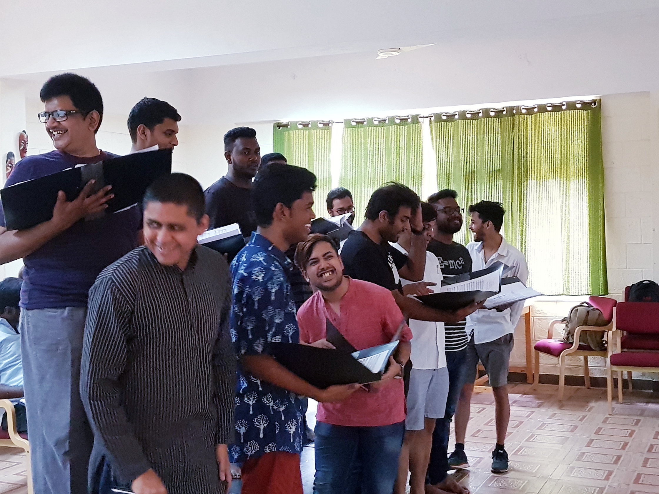 After 18 hours of togetherness, singing, laughing, sighing, eating, celebrating three (!) birthdays – we were finally done! 15 minutes behind schedule – we had completed recording all the 21 pieces we had set out to do. Now awaits an intense period of post-production work, guided by our experts Mark and Glen, and we look forward to proudly be able to release India’s first album of Western classical music, with an all-male voices choir, later this year.
