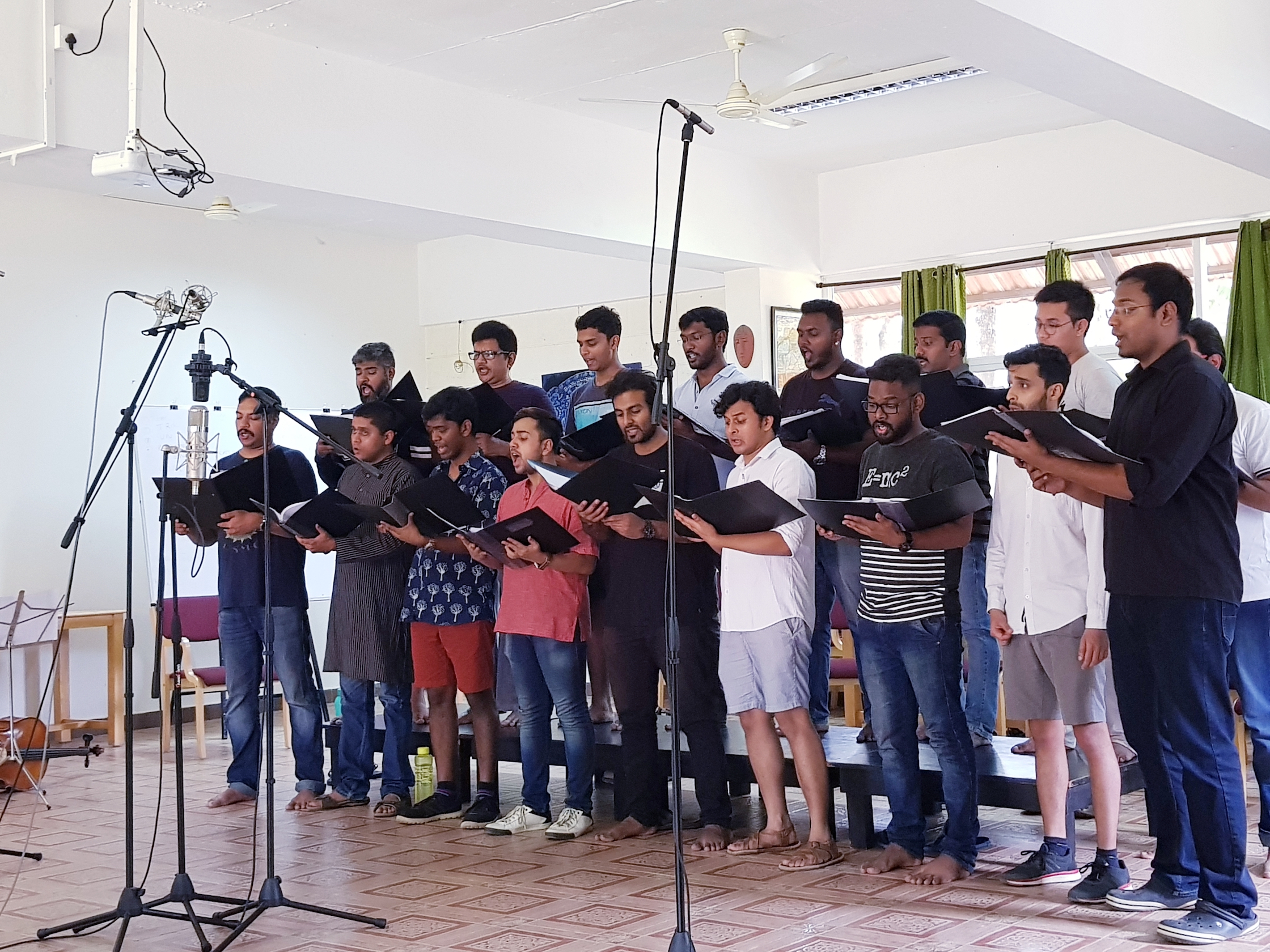 The second thing to manage was the collaborations. As mentioned above, we wanted to record primarily a cappella music, with instrumental accompaniment in only a few cases. This means of course, that we would like to be able to work with a sound engineer, who is well-versed with Western classical music, and who understands the quite big differences in recording such music, compared to say pop or rock music. Our way of singing, which is done in an non-amplified way, supported only by the natural acoustics of the venue we perform at – also means that the recording and post-production have to managed in a different way. Therefore, we were very lucky to be able to collaborate with two of Bangalore’s most eminent sound engineers – Mark Reddy and Glen Ebenezer (Ebenezer Recording House).