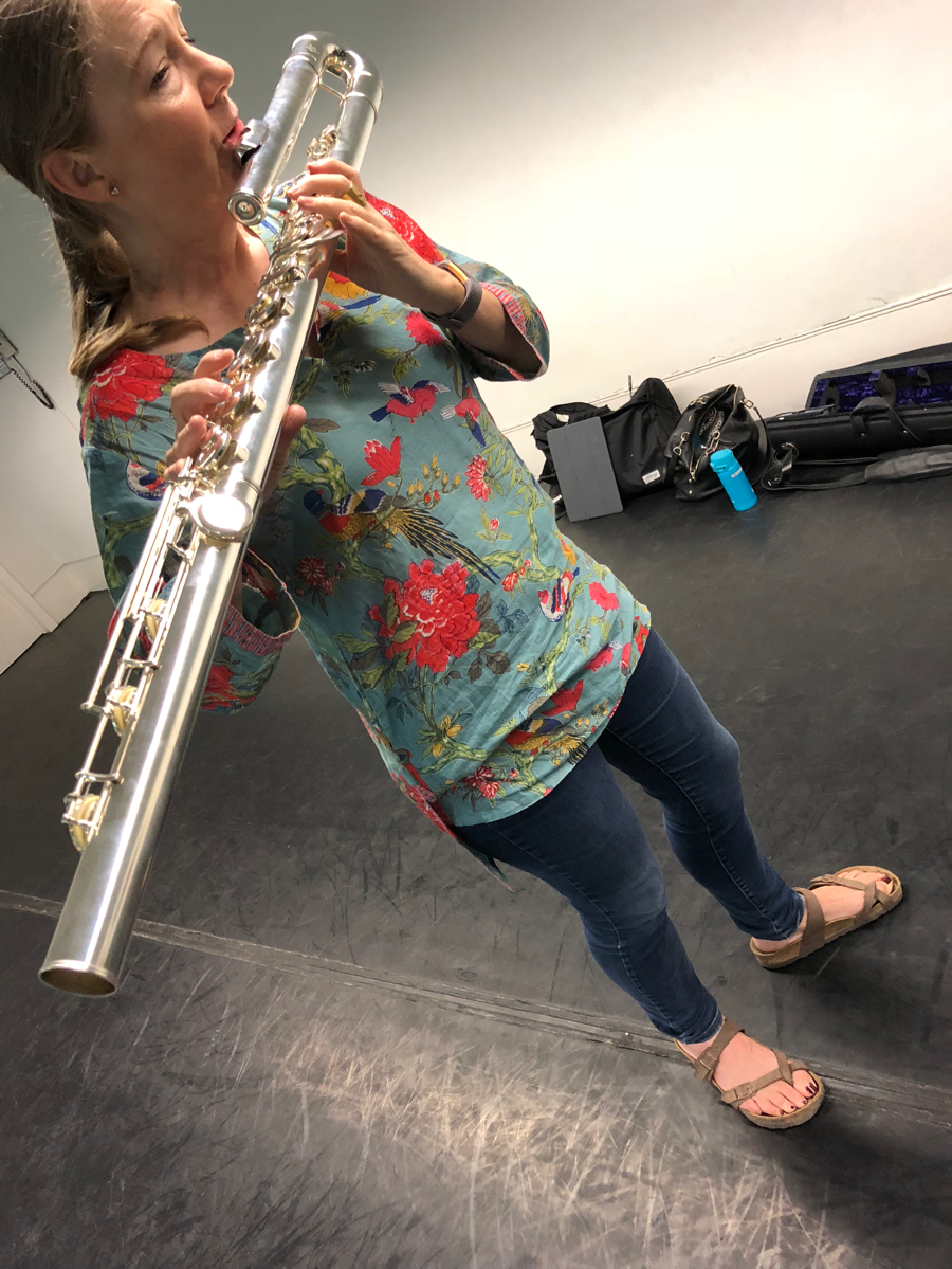 And here’s Katharine warming up her bass flute.