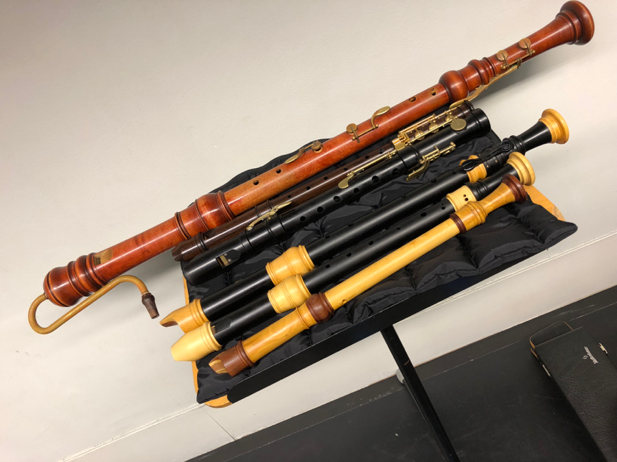 As we begin each piece we start to identify which instruments are best suited to the work at hand. We have the full range from highest to lowest flutes and recorders, giving us endless possibilities to explore. The range of each instrument is one consideration, along with tuning, colour, and the ability to either blend or contrast with the other instruments.