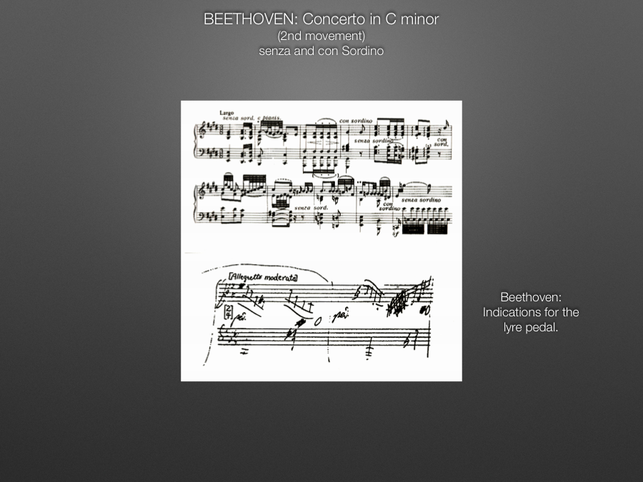 The same “senza sordino” indication is found at the opening of the second movement of the Piano Concerto #3 in C Minor, with the“con sordino” indications where Beethoven wants the dampers to be engaged again.