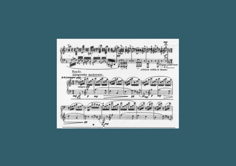 The piano of this time was also equipped with a mechanism that slid a piece of soft felt between the hammers and the strings, creating a magical, hushed sound that Beethoven most likely requested for this piece when he wrote “delicatissimamante,” as well as “sempre pp.”
