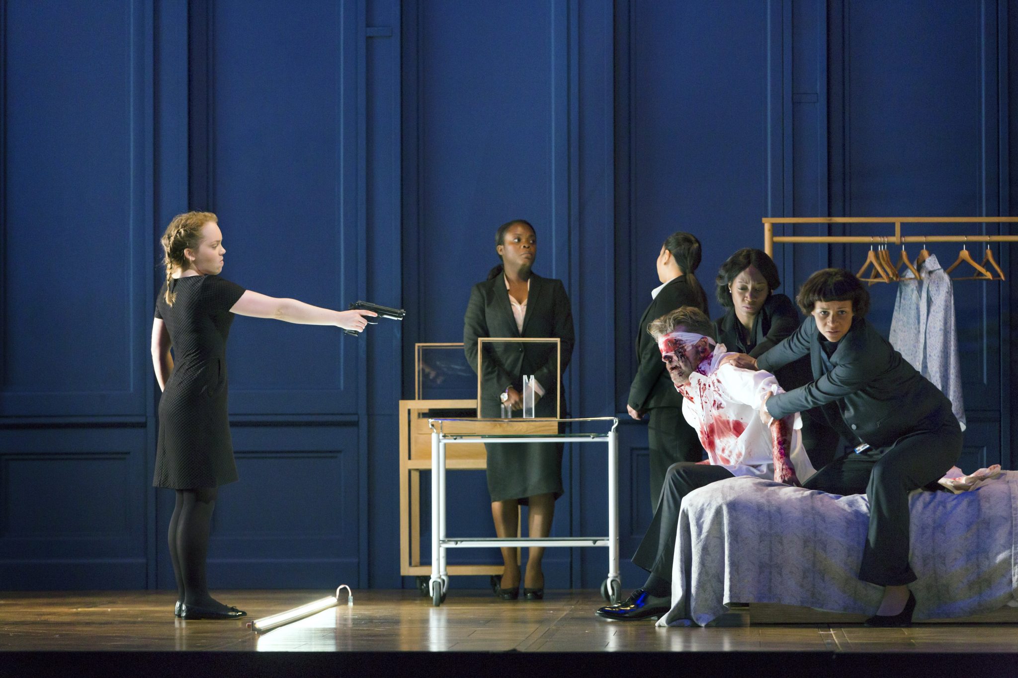 And burst forth it did. The ‘moral’ of the work is foretold in the first two utterances in the libretto: Intones Mortimer: “It’s nothing to do with loving a man. It’s love full stop that is poison.” That’s it then, love as poison is a theme, and it casts its vile shadow on everything and subsumes all in its perilous journey to the last scene. The characters are locked in relationships rife with twisted intention, despite which the music flashes moments of haunting beauty. The tension is pointedly underlined by the use of extreme slow motion in movement and gesture, in the story-telling style of the veteran director, Katie Mitchell. Indeed, this stylised movement took the work out of the orbit of naturalism and presented us with an artifice of time and motion that allowed for a more detached inspection of its deeply musical and dramatic surfaces. The concentrated power came directly from the text first, then the music, and then the stage-picture.