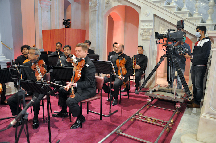 “It’s all about emphasis, actually,” explains Nowell. “The emphasis while shooting a live performance is that it should not interfere with the audience or affect that live event.” When there is no audience, the cameras can be put where the requirements of the performance demand, the lighting could be different and retakes are possible too. A concert by the SOI Chamber Orchestra, for instance, was shot in the magnificent Jamshed Bhabha Theatre foyer before the recent lockdown was imposed in Mumbai. Nowell would be less enthusiastic about putting a theatre piece on the foyer’s marble staircase but believes a play in the Open-Air Plaza (OAP) would be fantastic “particularly with the possibility of being able to move people in time and space. A performance could start in the OAP and appear to continue on the roof of the Tata Theatre, for instance, because we can edit it together.”