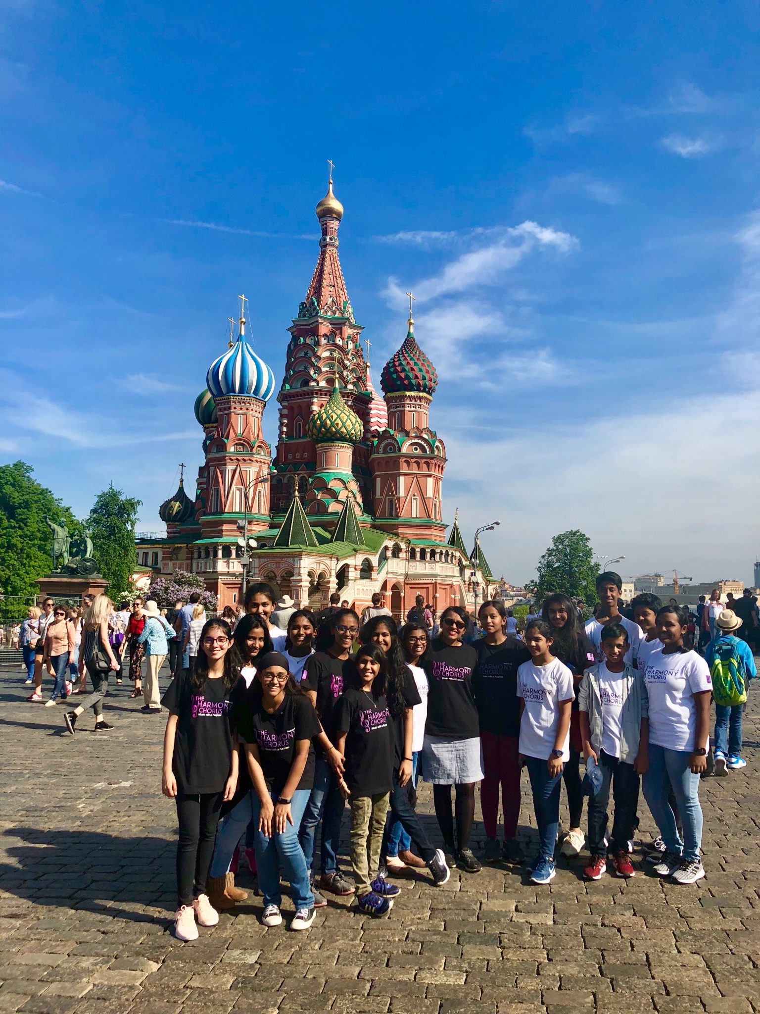 After a fantastic and intense two months of competing with India’s best singers on Rising Star 2 on Colors TV, a national level singing competition, and finishing off at India’s Top 8, the Harmony Chorus directed by Sandra Oberoi embarked on a grand concert tour to Russia! This is the first international event for the choir.