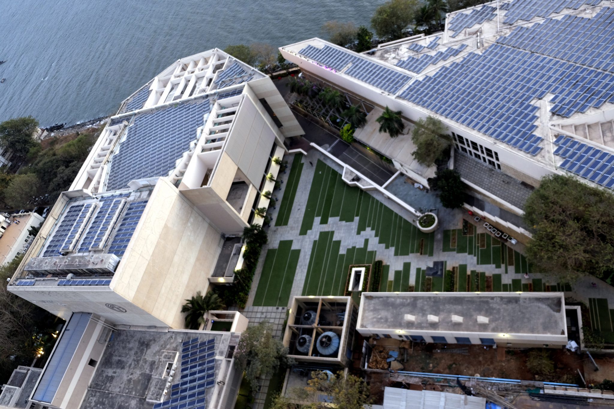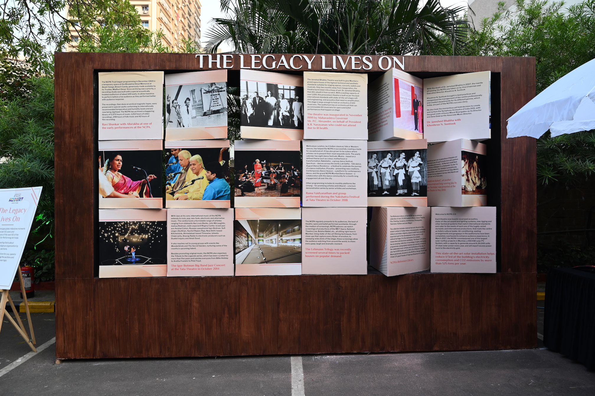 In spite of Dr. Bhabha’s bequest to the NCPA, the road to accessing the funds was a difficult one. After several legal hurdles over eight years, it was only in 2015 that the NCPA could start utilising the funds for the upgradation and beautification of the complex. Among the many changes carried out, an important one was the aesthetic refurbishment to create an external space as seamless and creative as the iconic theatres within, so that they could be used for outdoor, open-air activities. This brief led to the transformation of the garden spaces into the Open Air Plaza (a long zigzagging granite pathway that seems to lead into the horizon, interspersed with large swathes of bermuda grass and flower beds), Secret Garden (tucked away just outside the Tata Theatre and created around the old coconut and barringtonia trees), Sunken Garden and Experimental Garden, all equipped to consume minimum water and require minimal maintenance. With a concentrated focus on sustainability, solar panels were installed on the terraces of the NCPA in 2017, making it one of the largest rooftop projects in Mumbai.