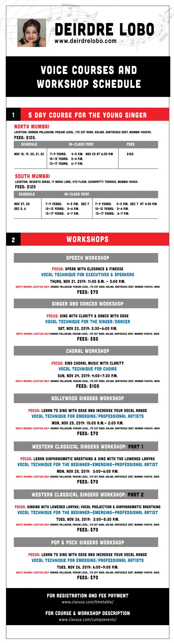 WEBSITES: www.deirdrelobo.com AND www.clavusa.com