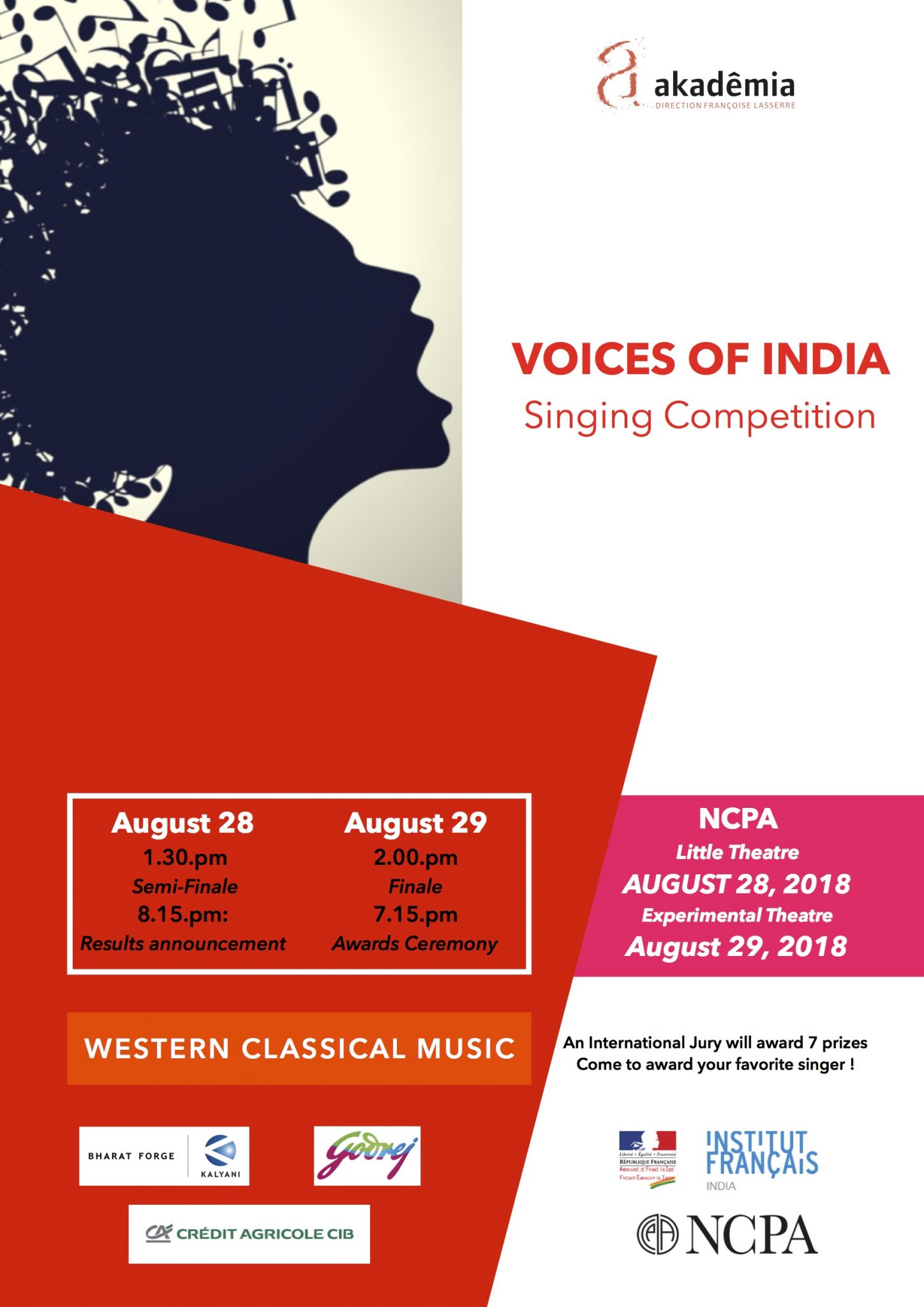 The first edition of the national singing competition, Voices of India, will take place at the National Centre for Performing Arts (Experimental Theatre) of Mumbai on 28th August 2018 at 1:30 pm (semi-final) and 29th August 2018 at 2:00 pm (finale). The competition benefits from the expertise of an international jury composed of experts from prestigious institutions of Western classical music as well the enthusiasm of 20 talented Indian participants.