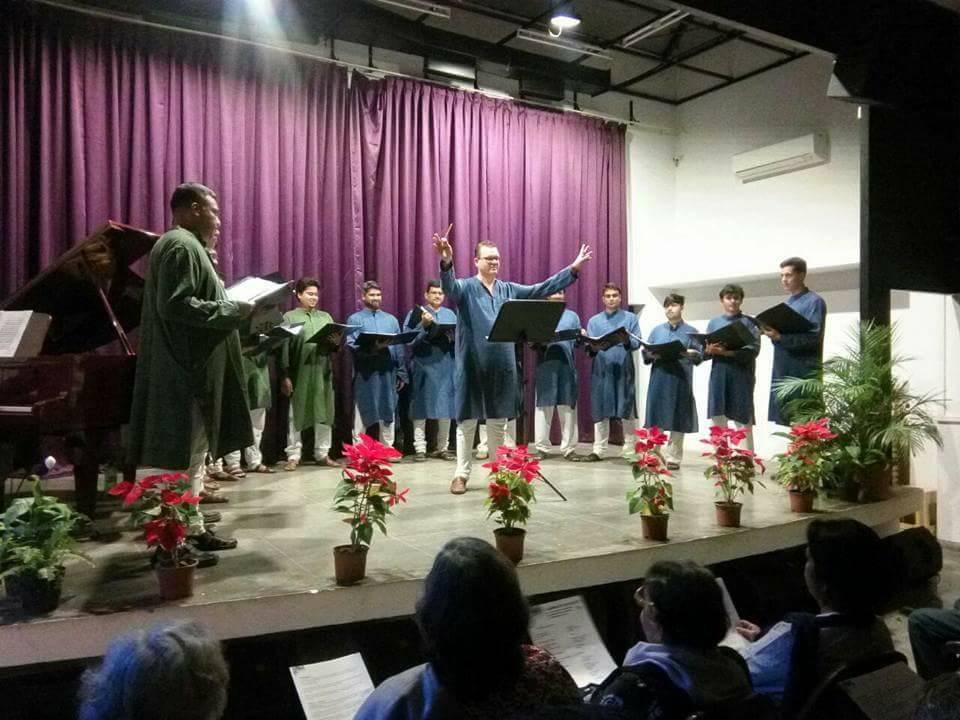 A cappella through the Ages was a successful first programme, which we performed at St Andrew’s Church, Bangalore, and at Notre Dame des Anges in Pondicherry. Both churches with a good acoustics, where the natural voice easily resounds and gets amplified – so, no need for microphones, amplifiers etc etc! With sadness I see how many (all?) choirs these days tend to use microphones at performances. I can understand this is called for in acoustics which are not built for the natural voice singing (as so many unfortunately are in India) but when we do have access to churches, halls and art galleries etc with good acoustics – please stay far away from microphones! Not only will it sound much more rich and natural, it will also challenge the choir singers to use their support, and also the conductor to work with teaching proper vocal technique. Shouting “You are flat!” or “Sing sharper!” without being able to actually TELL the choir how to do so is never acceptable behaviour from a choir conductor!